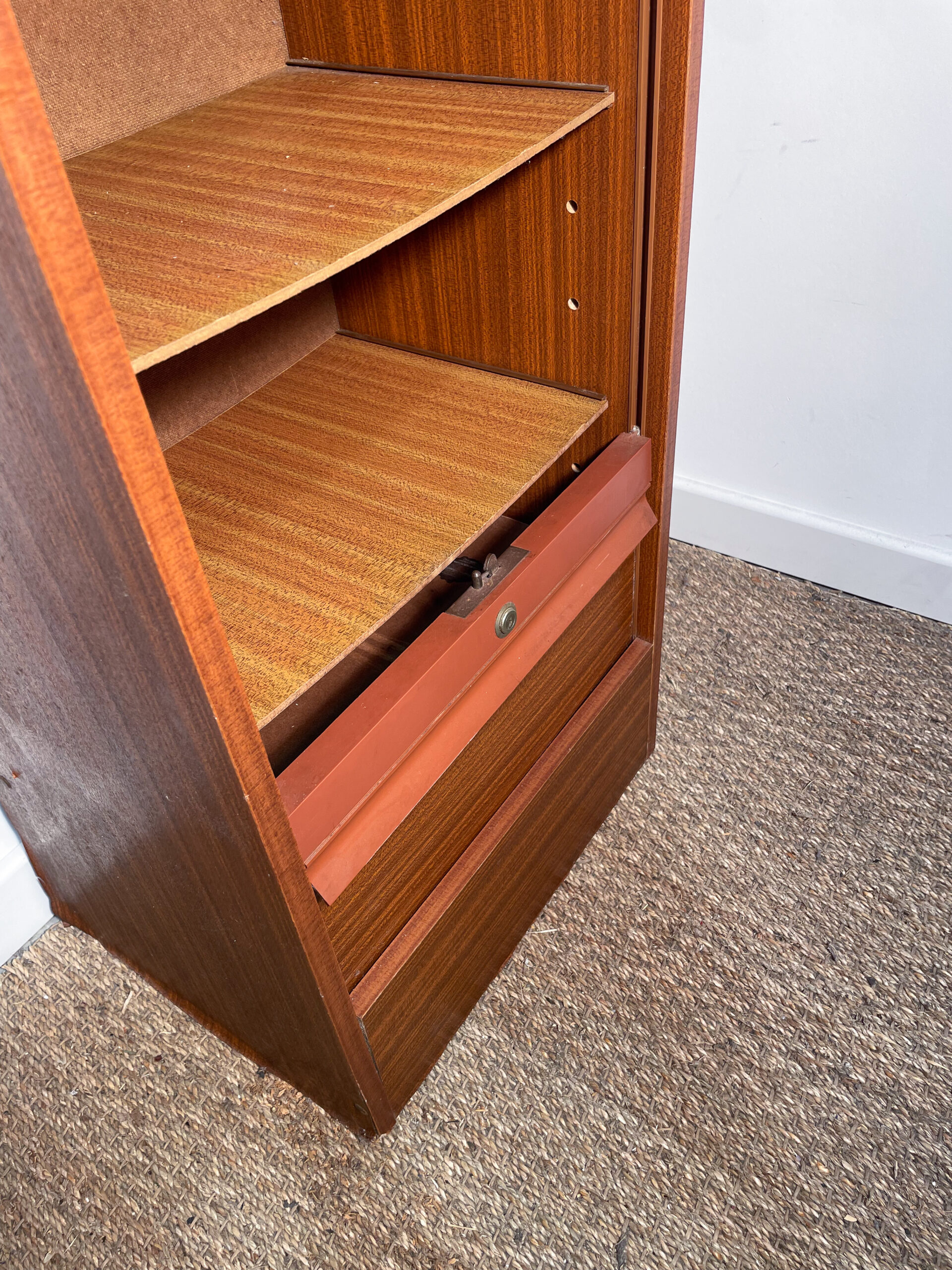 Dispose d’un volet roulant par le bas permettant de refermer le meuble.