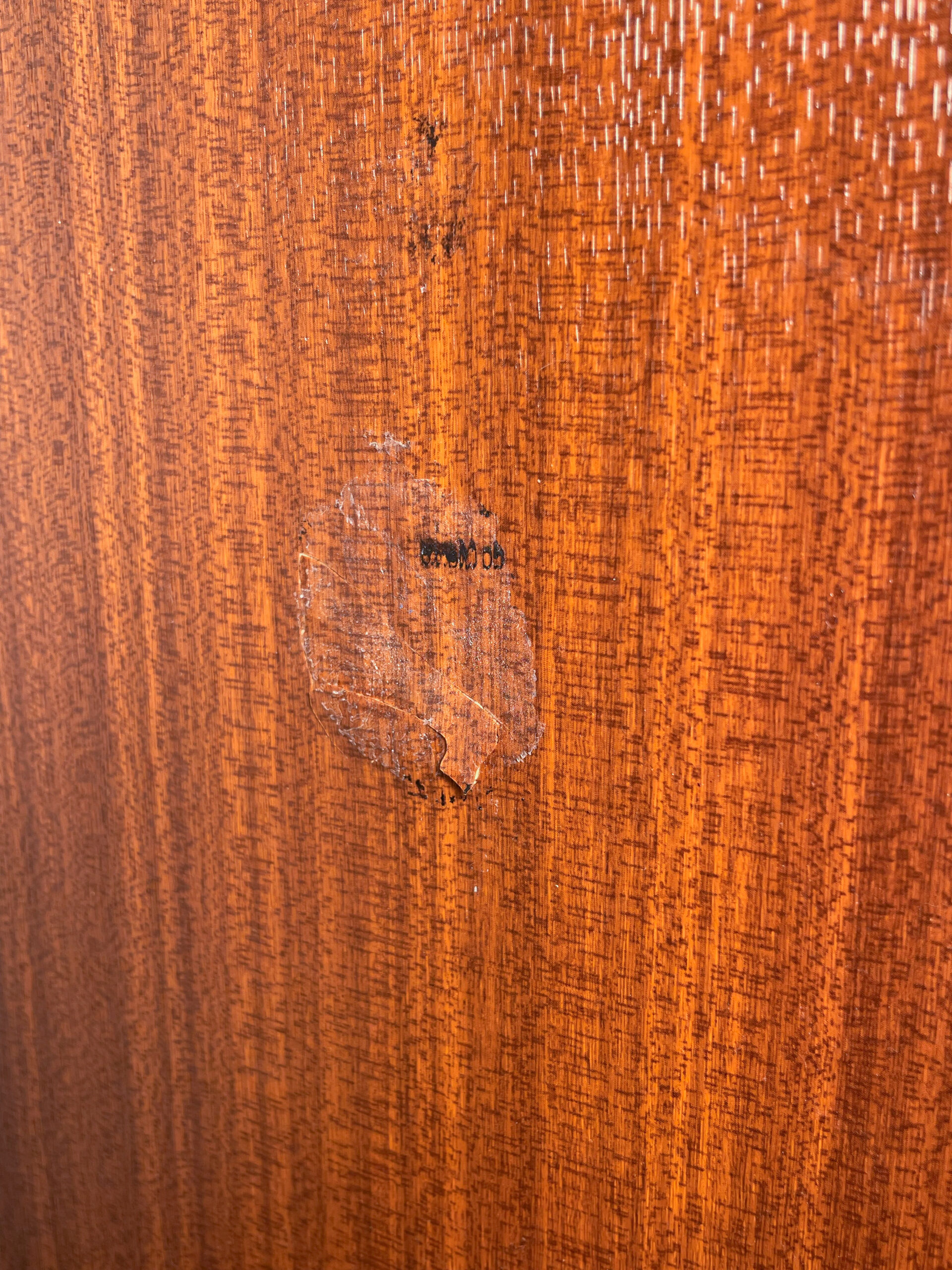 Une partie du revêtement sur le côté gauche a été abimé par de la colle.