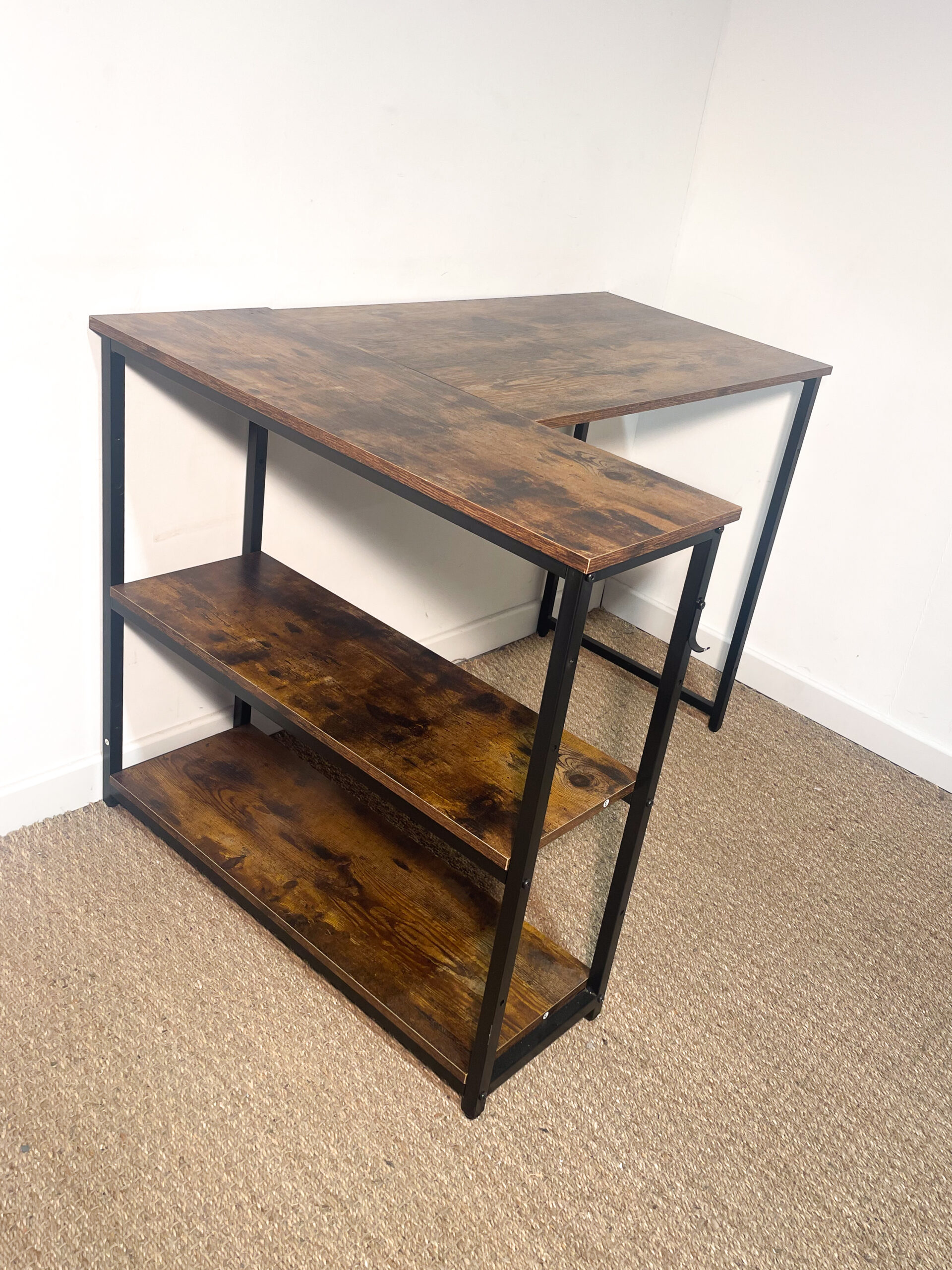 Bureau d’angle en bois et métal noir