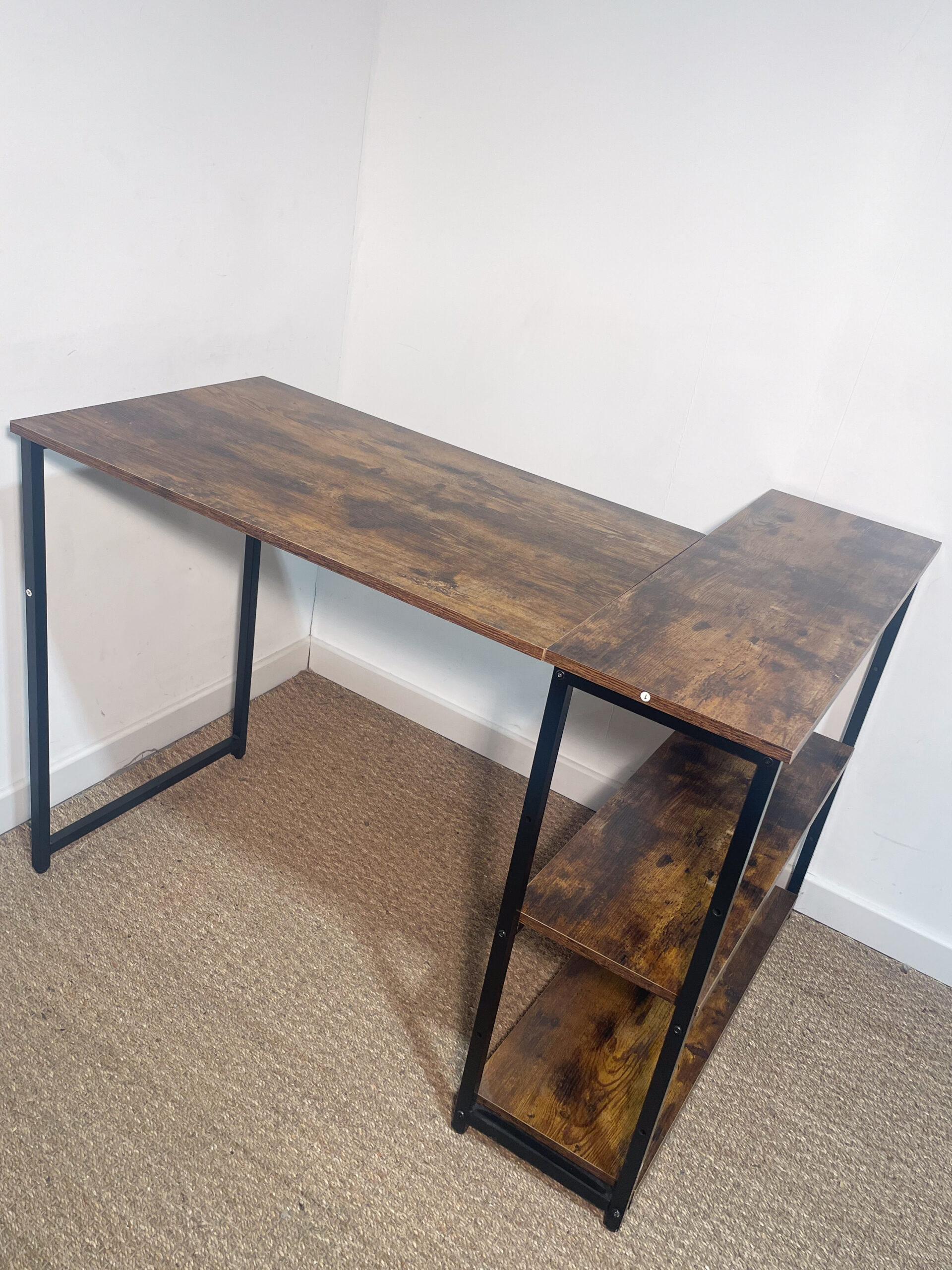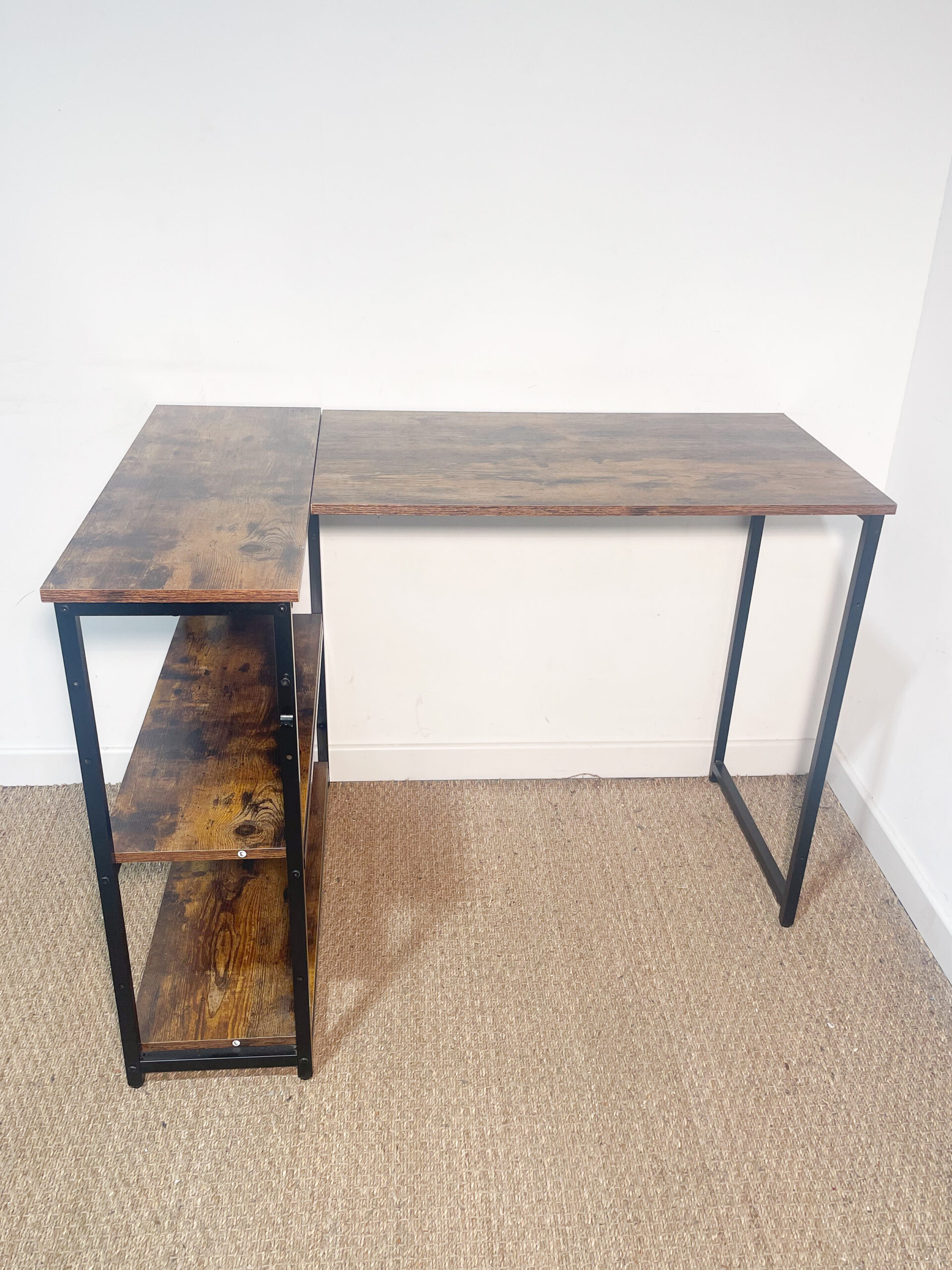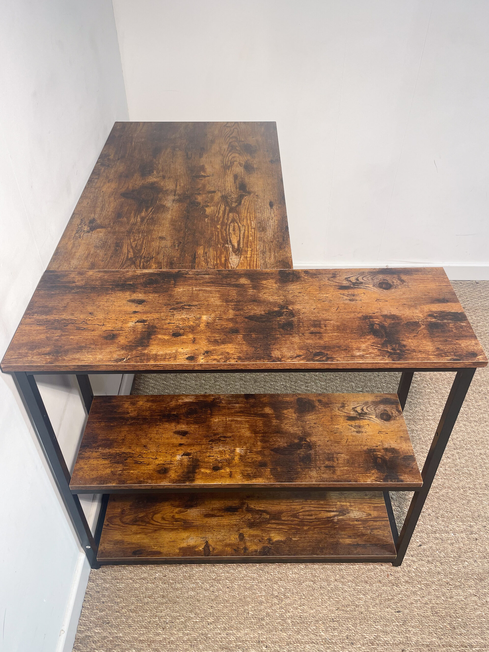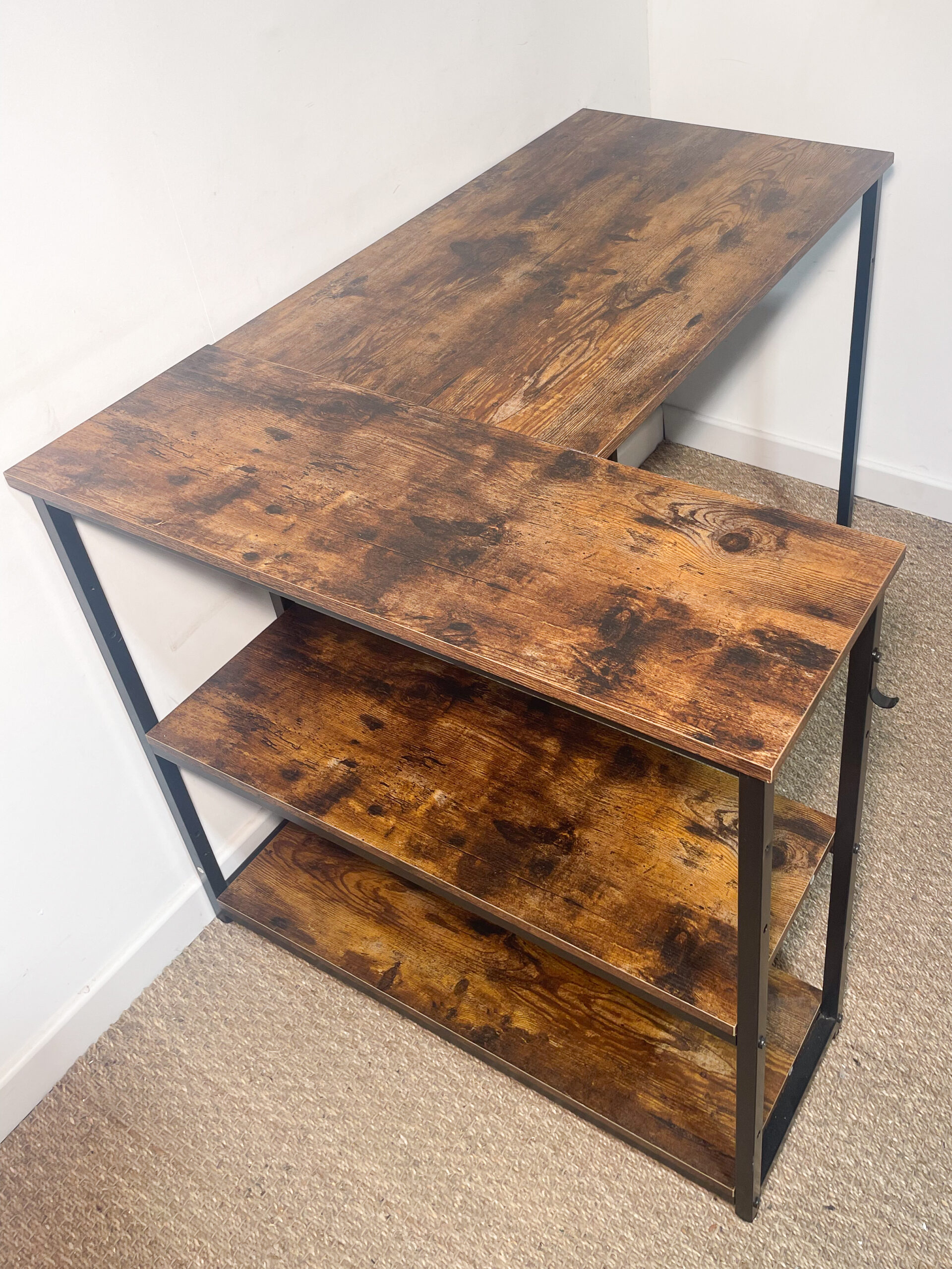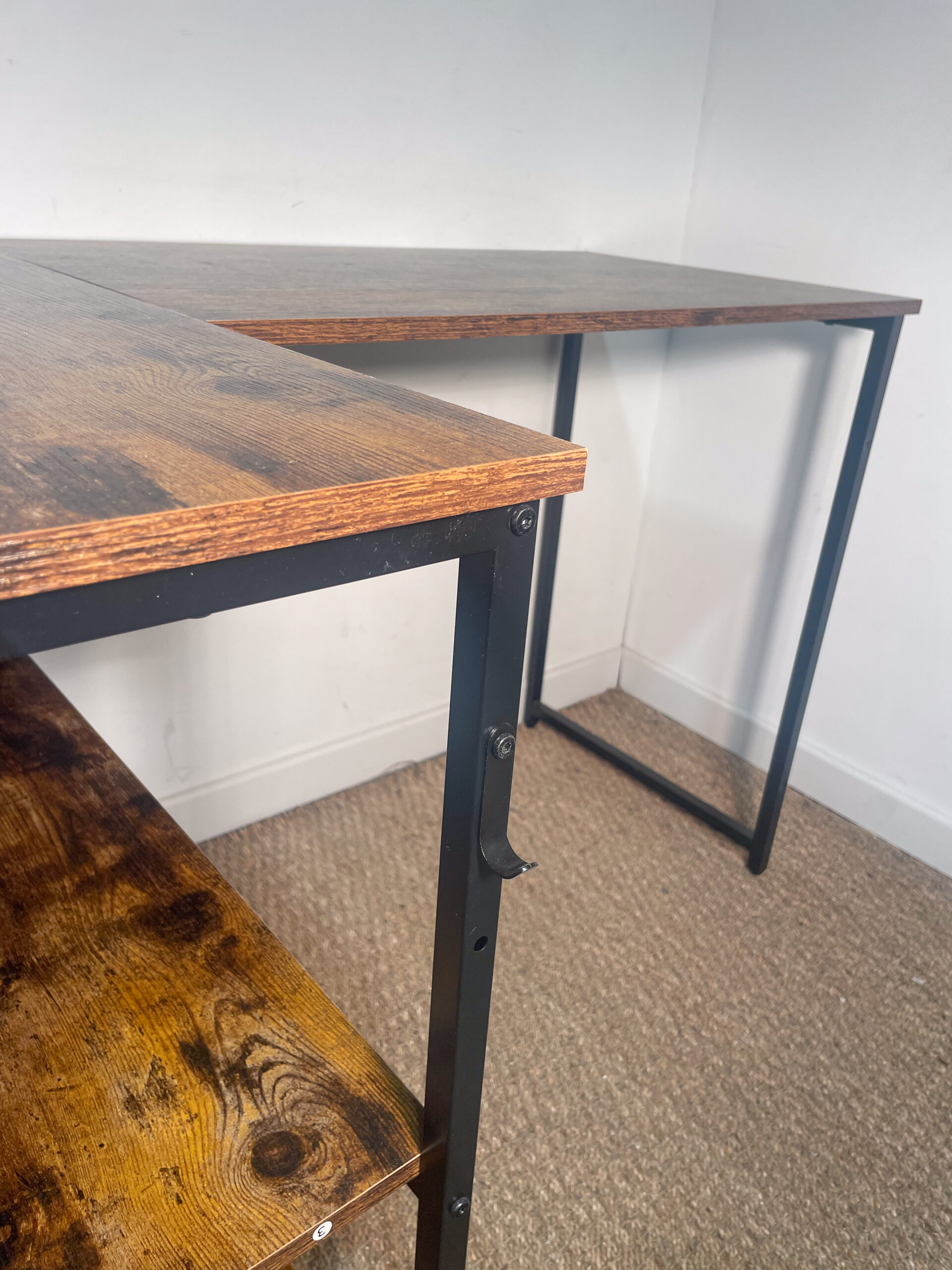 La partie de l’angle est légèrement ‘désolidarisée’ du reste du bureau : cela est à prendre en compte pour le déplacer, mais le tout est bien stable une fois installé.