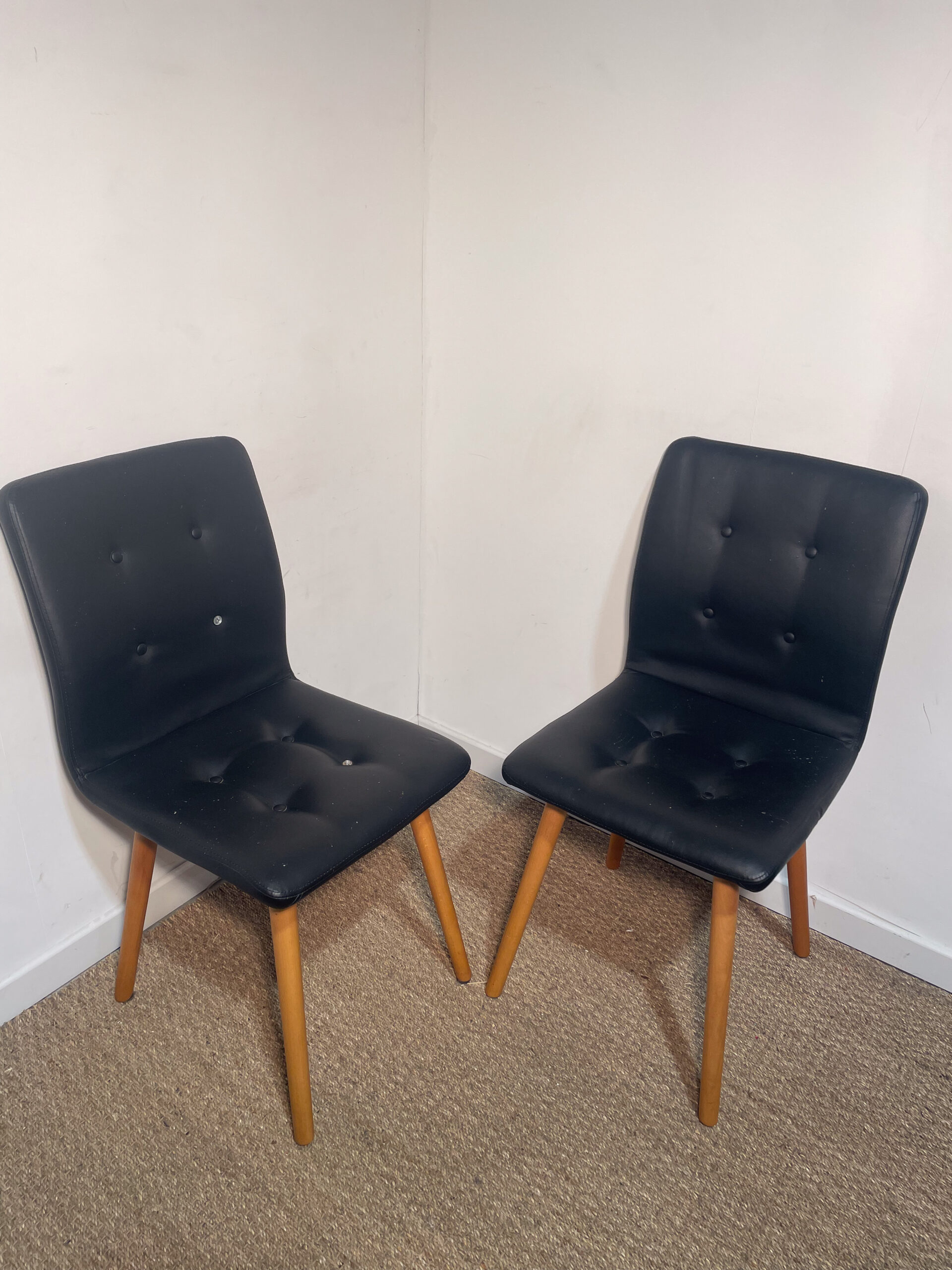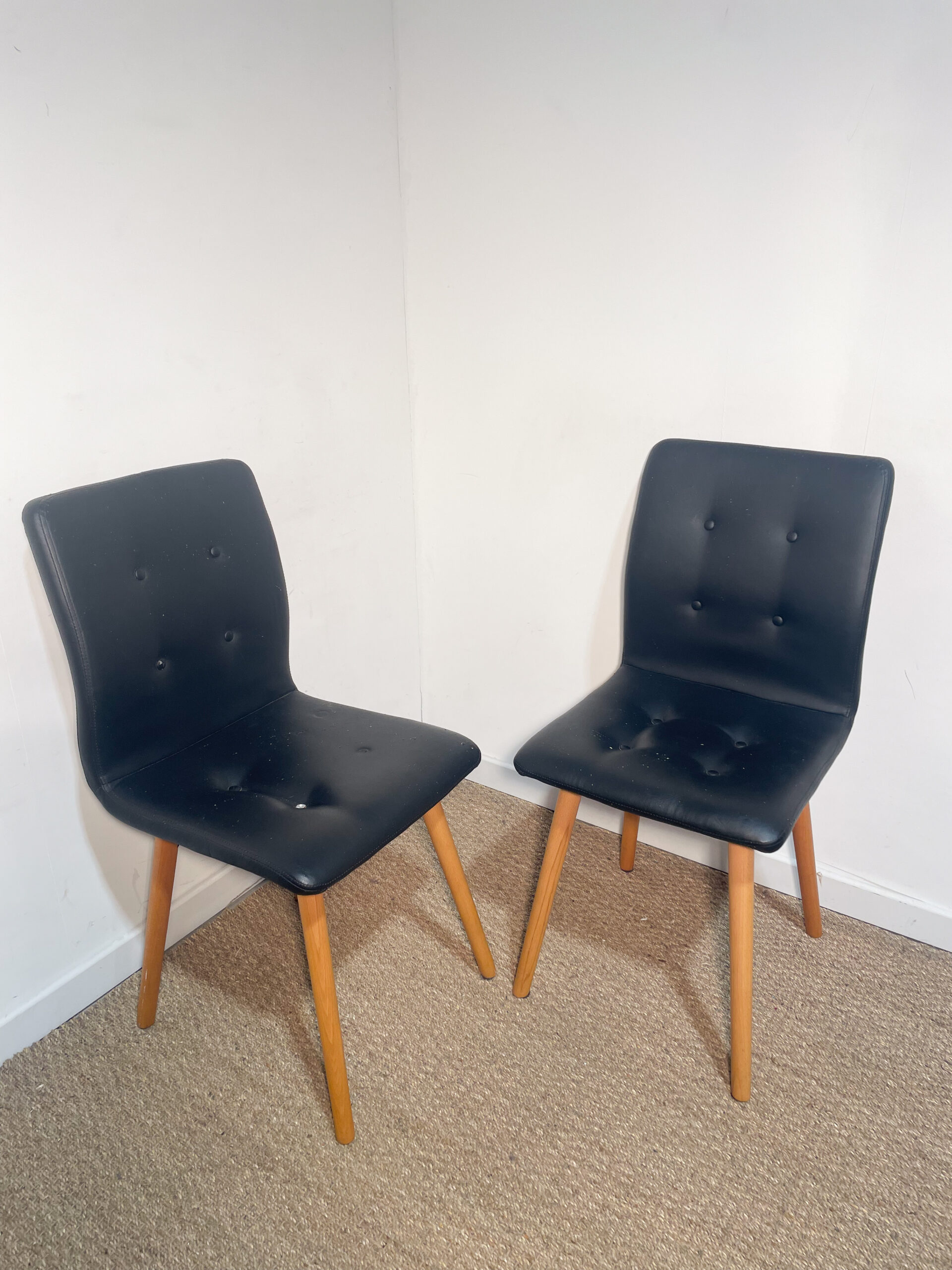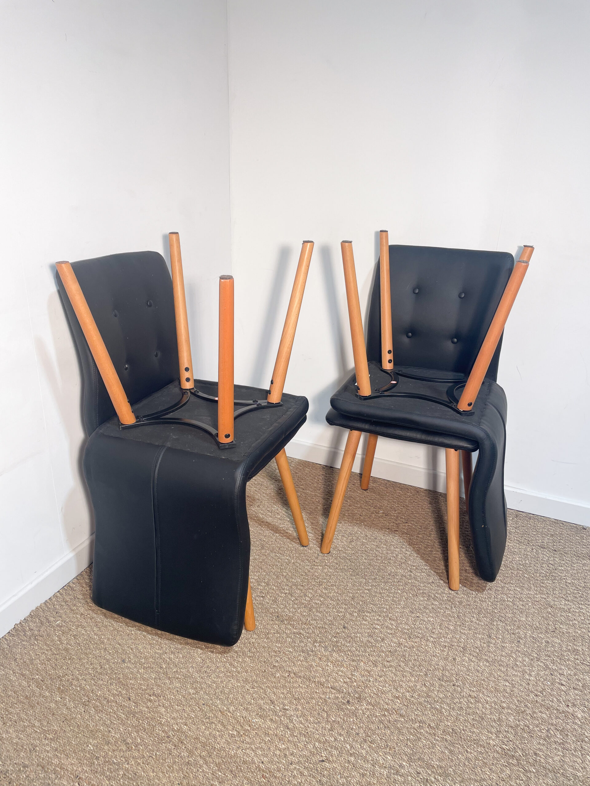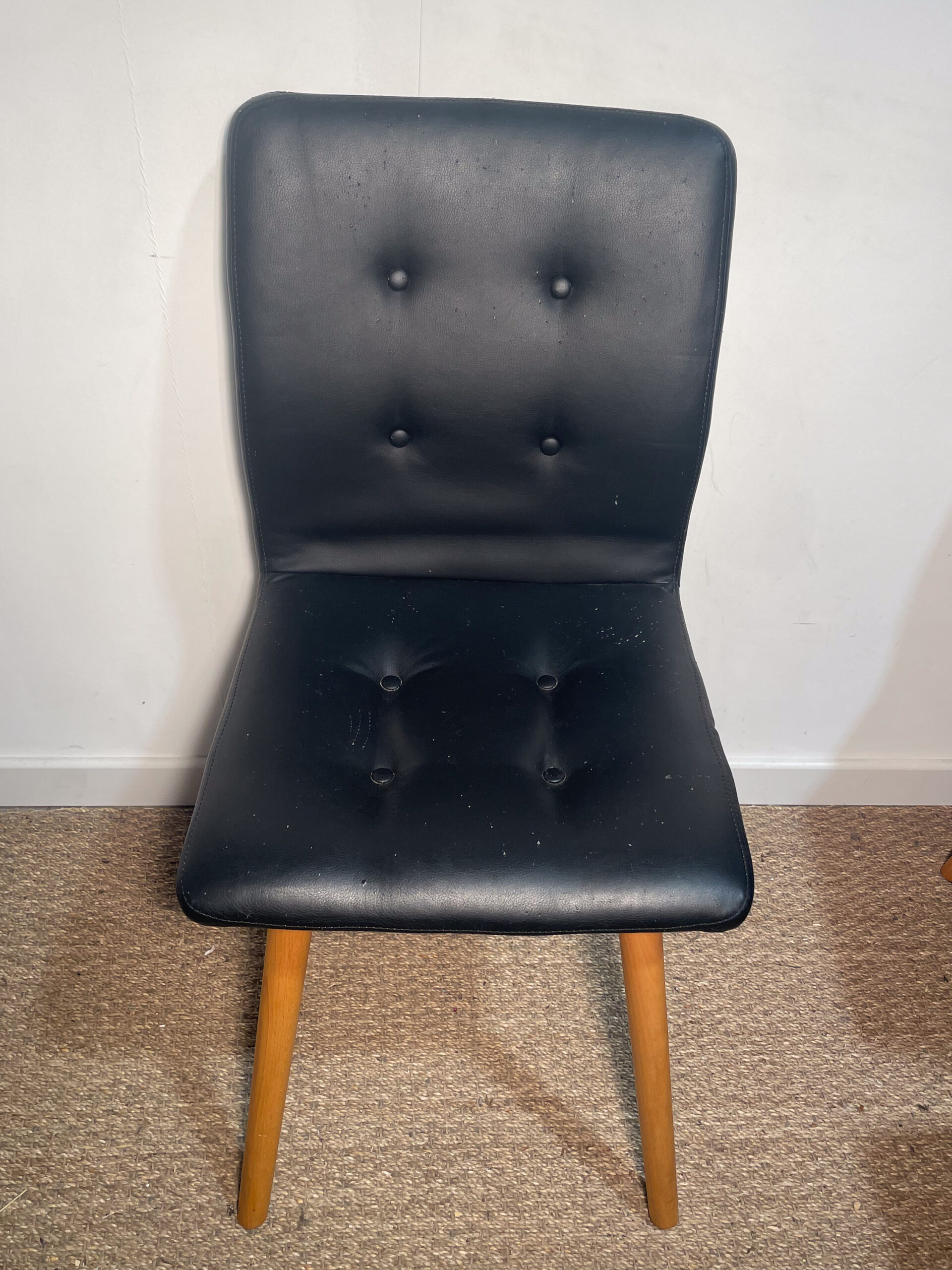 Lot de 4 chaises avec piètement en bois et revêtement en similicuir.