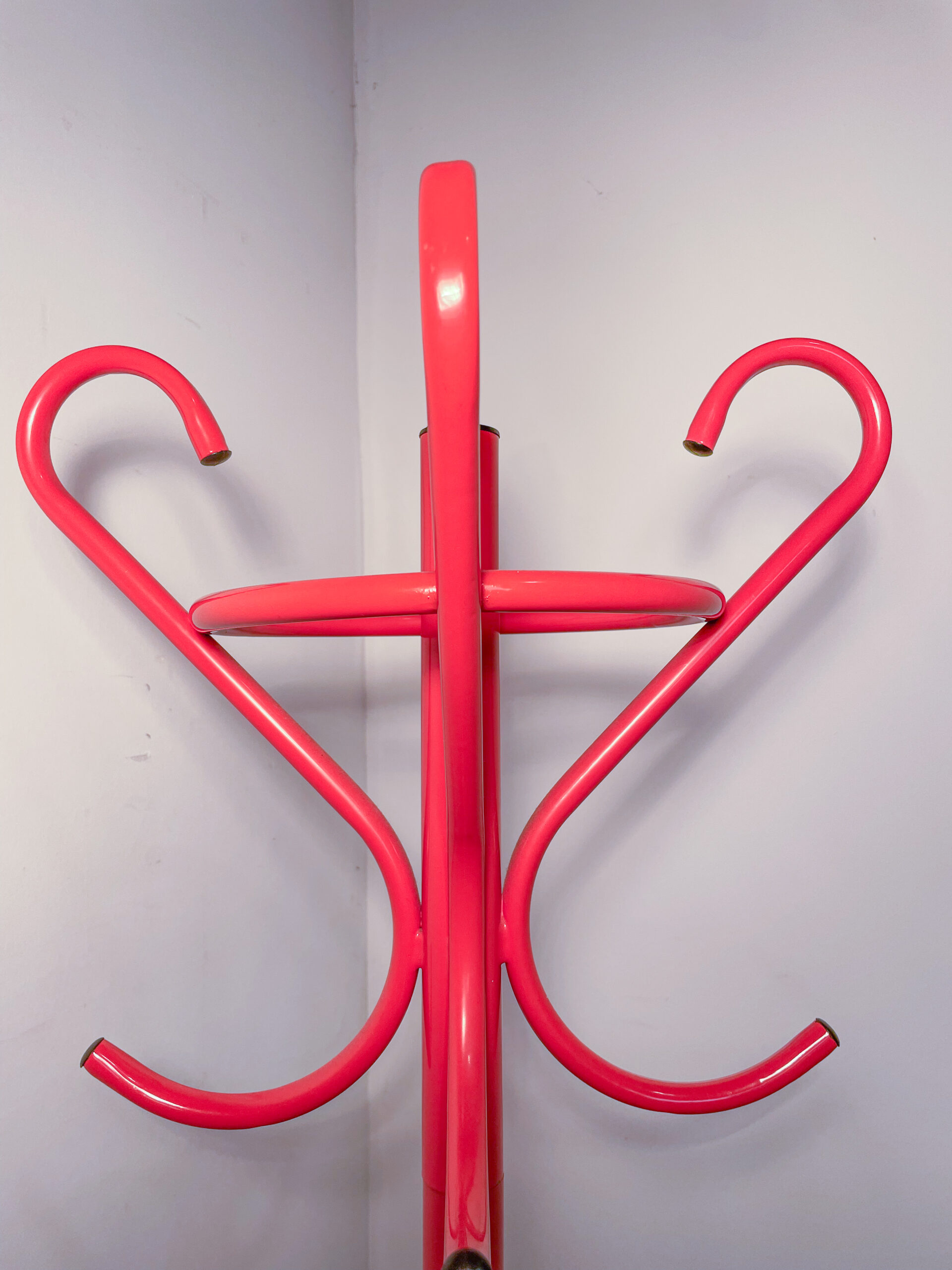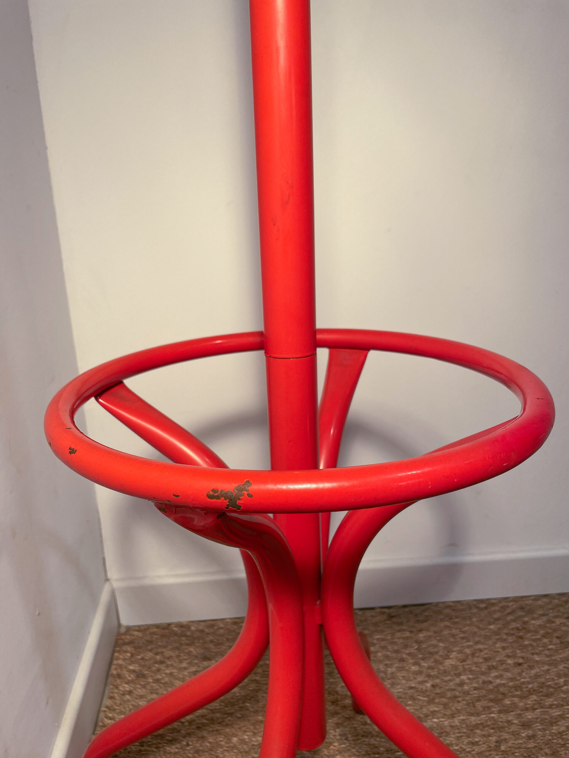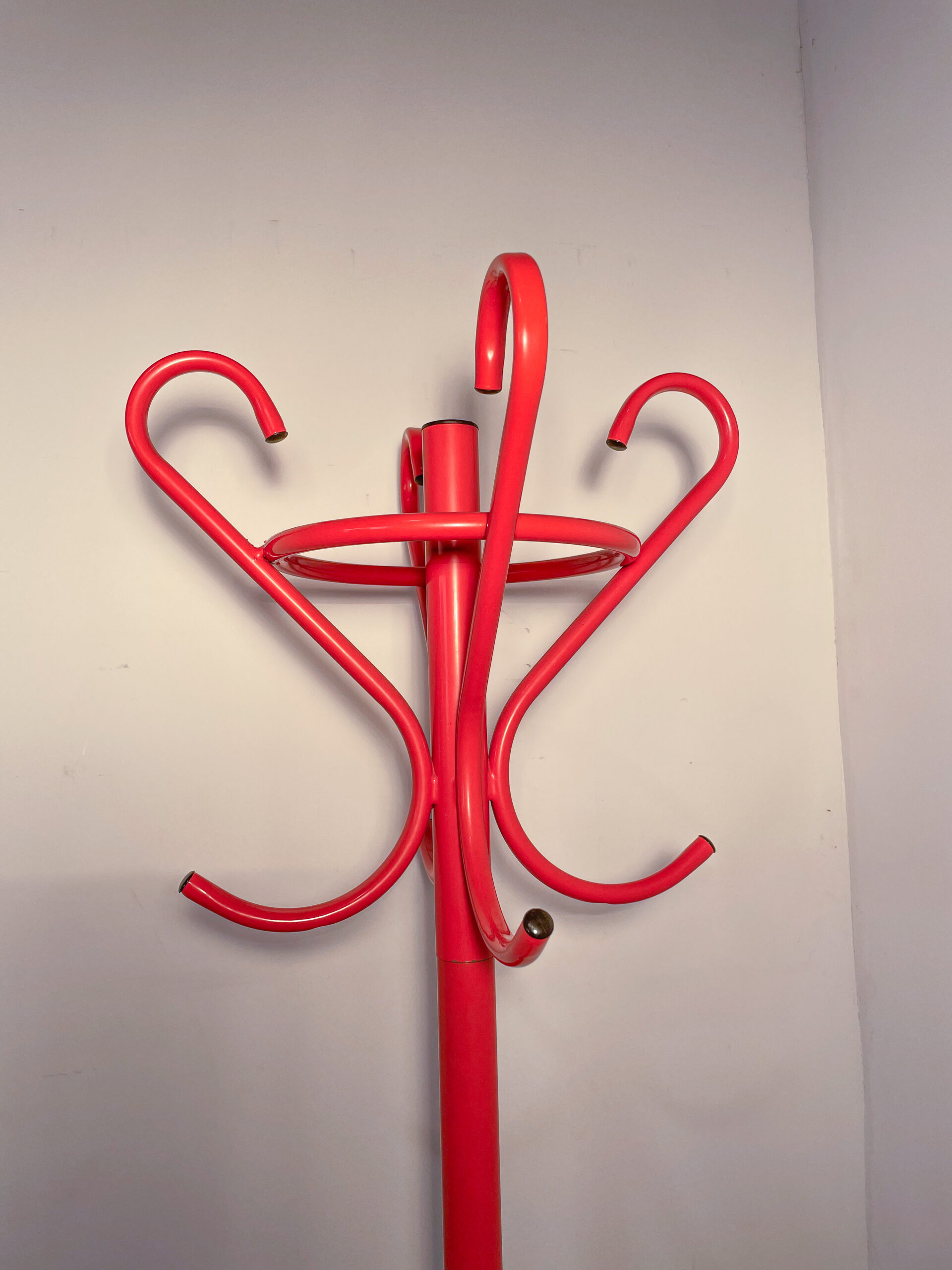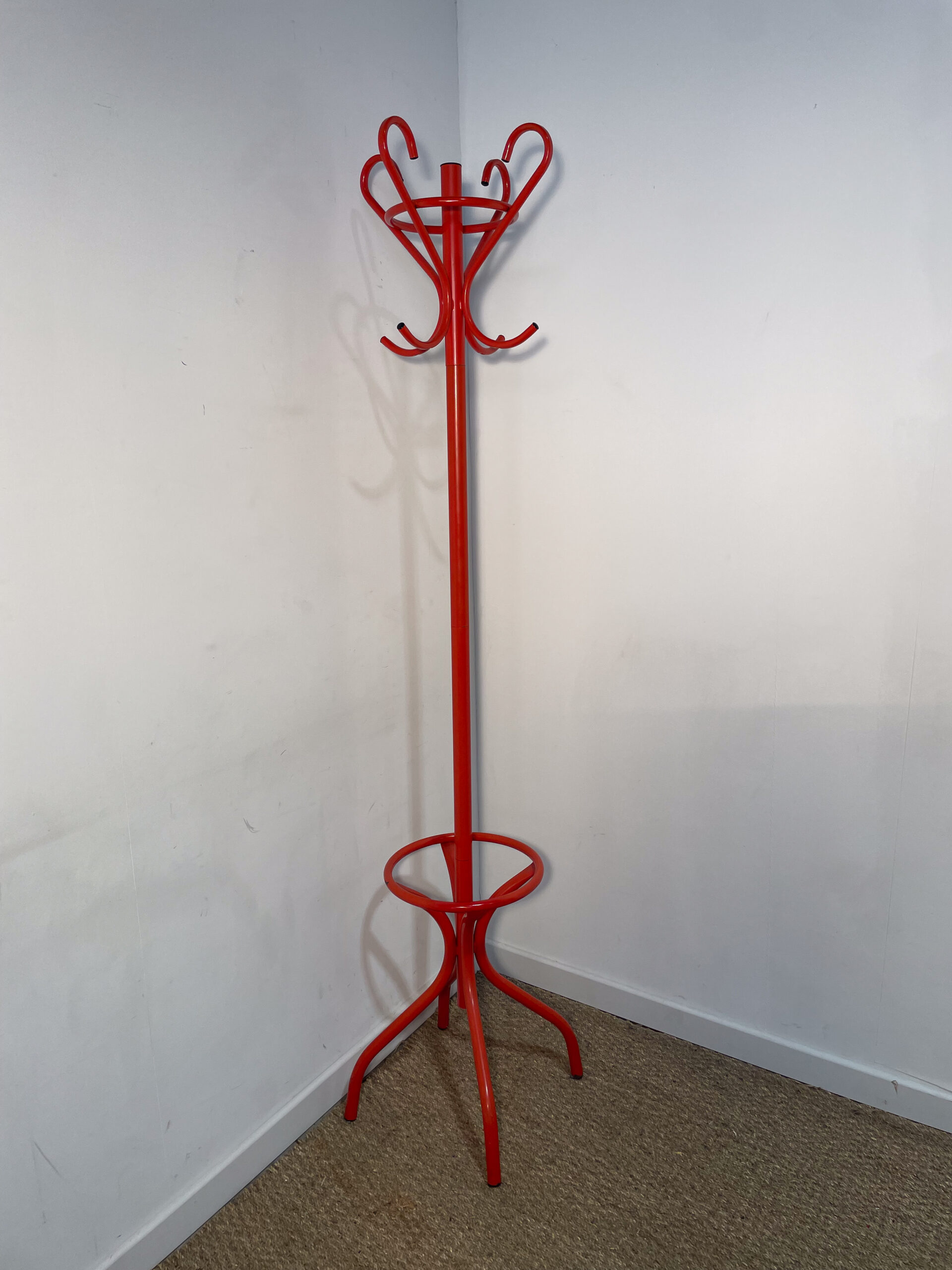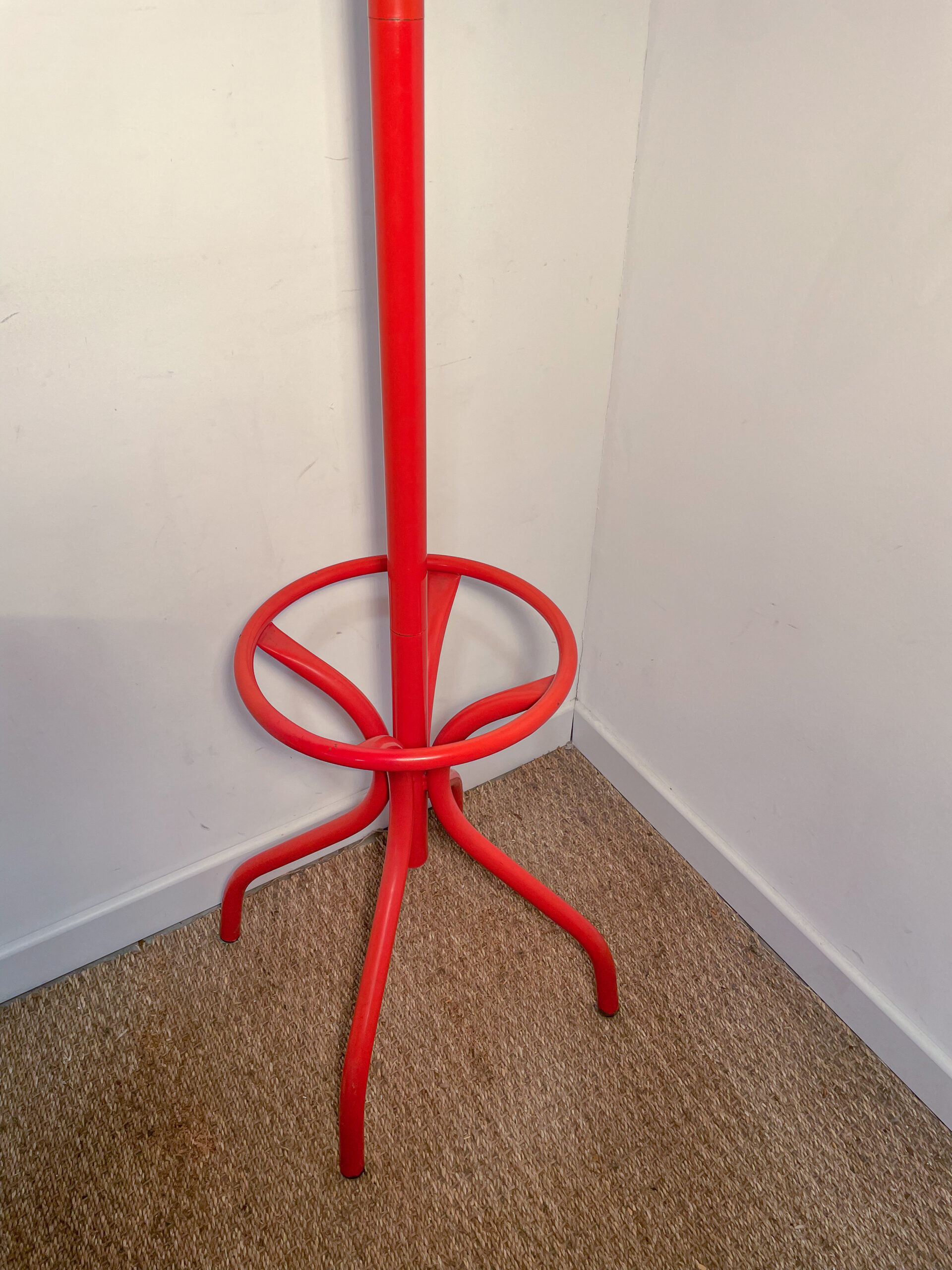 Grand porte manteau métallique à poser, couleur orange/rouge intense.